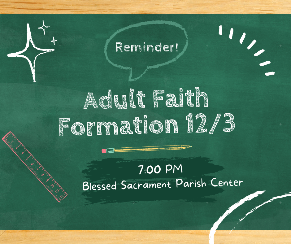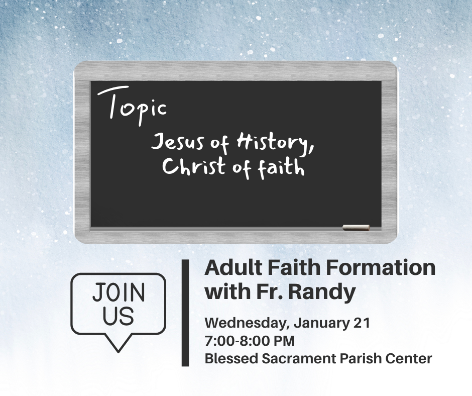 Join Fr. Randy Schon on Wednesday nights for his Adult Religious Education Classes. They are offered from 7:00 to 8:00 PM in the Blessed Sacrament Parish Center.